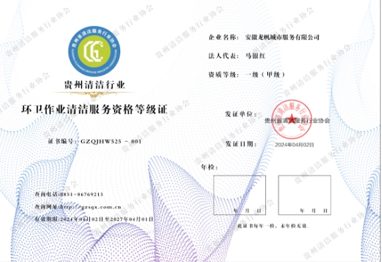 环卫清洁资质证书